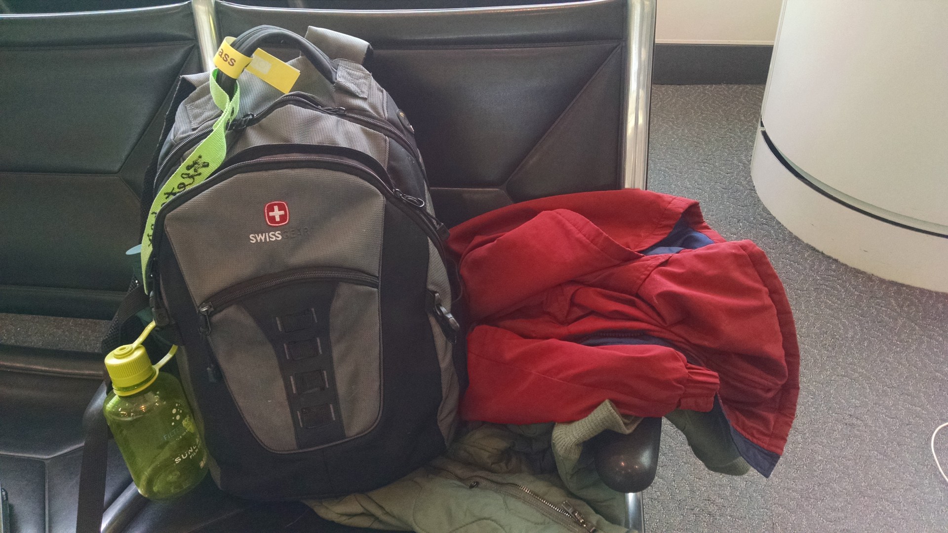Water bottle and snacks for the flight
