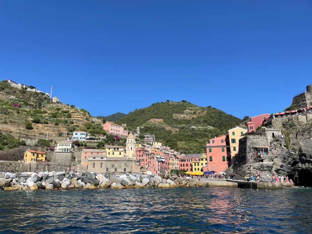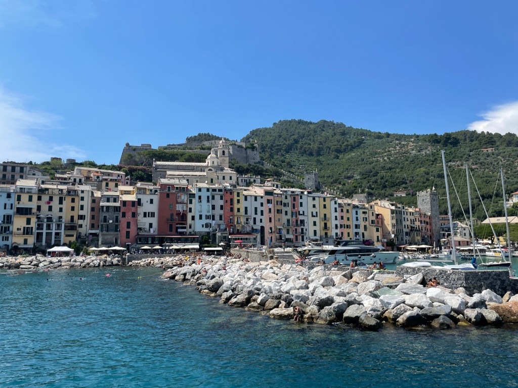 We both really really enjoyed Porto Venere. While it is not one of the 5 towns, it is still on the ferry route and worth the trip. This has the charm of Cinque Terra but still feels like a living city. We saw kids on a field trip, a group of teenage guys hanging out eating pizza and fishing boats coming into the harbor.