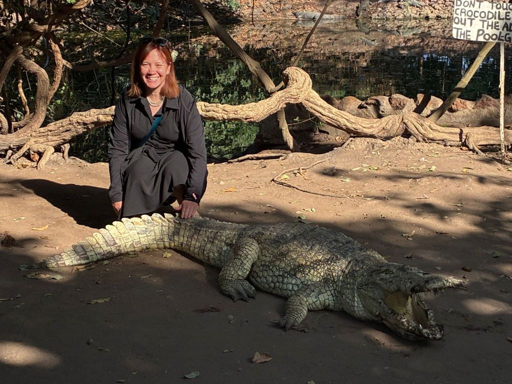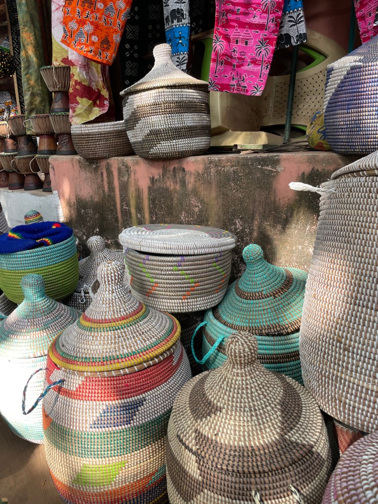 Day 3: For our last day, I hired our driver from the previous two days to take us around Banjul. This would have been hard to do and I am glad that Solomon (Solomon Tours 00220-7772876) was available. We spent the day visiting the 400-year-old Kachically Crocodile Pool (a group favorite), the Banjul museum, Albert market, with lunch at Kunta Kinteh Beach. (This was a Western all-inclusive resort, and while it had a great menu, it made me very happy about my decision to stay at Mujula Boutique hotel). I’ll also note that we stayed close to town on our last day. There are limited flights to Dakar, so I wanted to make sure there were no unforeseen circumstances that kept us from that 10 pm fight.
