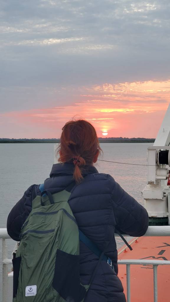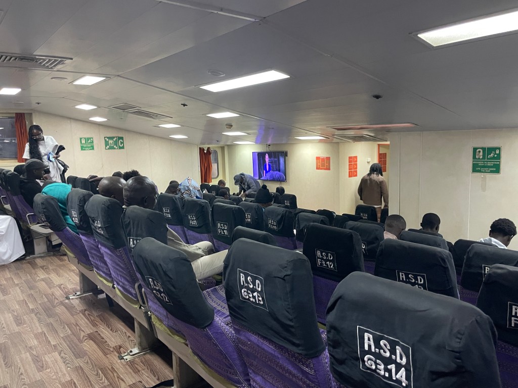 Tickets are bought in person and can be bought in advance or the day of. But cabins sell out fast and what was a great trip in a cabin, could have been pretty awful sitting upright in the main area. Check-in was 3-6 pm with boarding at 6 pm and departure at 8 pm. If you have your tickets, I’d recommend arriving between 5 and 6 pm. The departure terminal is at the same location as the Goree Island ferry, you just enter through a different door where you will encounter several long, duplicative and inefficient lines. If you have a cabin, you can take your luggage with you. Cabins have anywhere from 2 to 8 beds, include a bathroom and if you trade your passport you can get a key to your room. There was a restaurant where you could purchase dinner and the cabins included a simple breakfast with the ticket. Linens are provided but I was glad I had a sleepsack. I thought the ferry was comfortable and much more interesting than flying. It gave us additional interactions with both local and foreign travelers, the sunrise was beautiful and I saw a dolphin.
