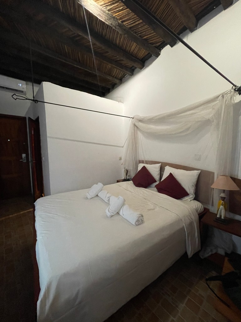 While there are some limited hotels in Banjul, most of the hotels are a few miles south. This is a stretch of hotels along a pristine coastline. Similar to many ocean front locations, there are a range of hotels from large western all-inclusive to smaller boutique hotels. I wanted a balance. I knew we would have some downtime and spend more time in the hotel than a typical trip that is go-go-go, so I wanted some creature comforts. But I did not want an all-inclusive resort where I only met Western tourists. After a lot of research, I picked Majula Boutique Hotel. The hotel was comfortable, the staff was very friendly, and the hotel had a wonderful view of the ocean. While right on the ocean, it is not a suitable beach for swimming and sunbathing. But I loved hearing the ocean at night! The hotel’s restaurant was good and within walking distance of a few fantastic locations like the Butcher’s Shop, Clay Over and Ngala lodge. (If looking for a fancier hotel, Ngala gets fantastic reviews). For half our group, this was their favorite hotel of the trip.